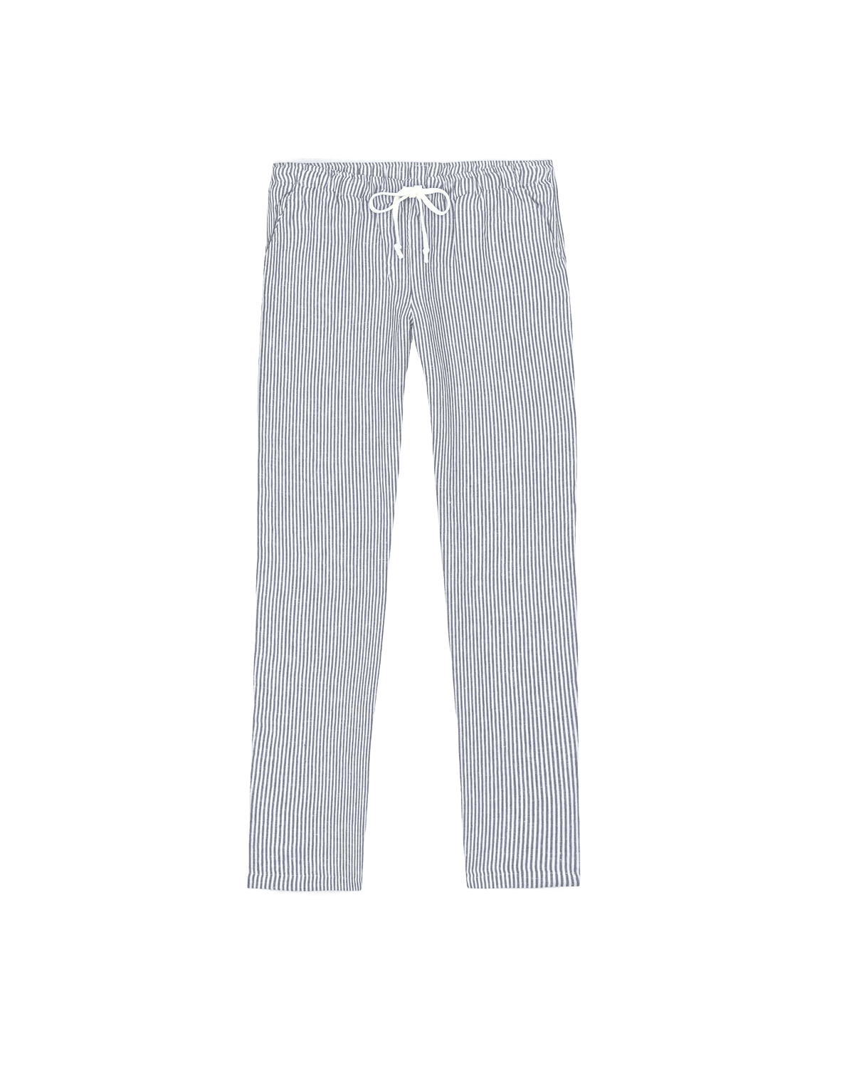 Alex Crane striped linen drawstring pants made with sustainably-grown French linen and washed with biodegradable softeners.