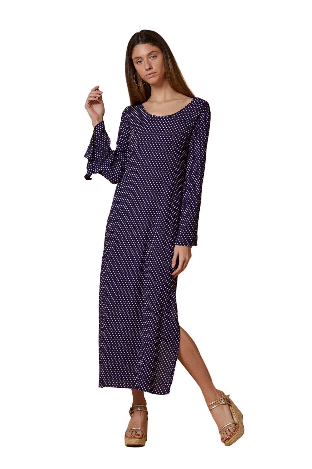 Whether the day brings a walk to the farmers market or an evening spent watching the sun go down at the park; this elegant, light-weight bell sleeve dress will carry you through the warmer, sweeter days of spring and summer.